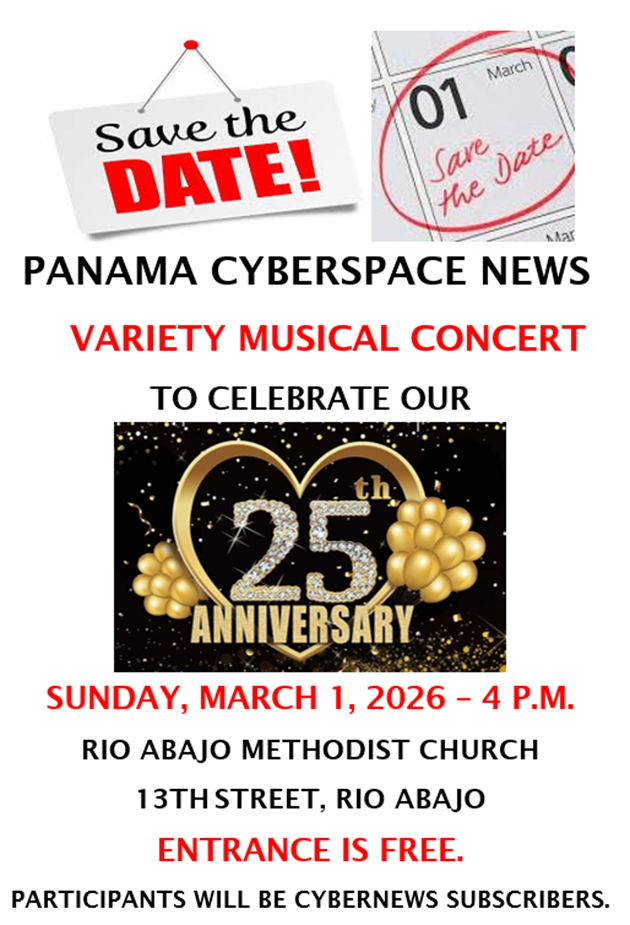 Panama CyberSpace News will be celebrating their 25th Anniversary with a Variety Musical Concert On Sunday March 1 2026 at 4PM at the Rio Abajo Methodist Church on 13th Street Rio Abajo. The participants for this musical event will be Cybernews subscribers. The Concert is open to everyone.